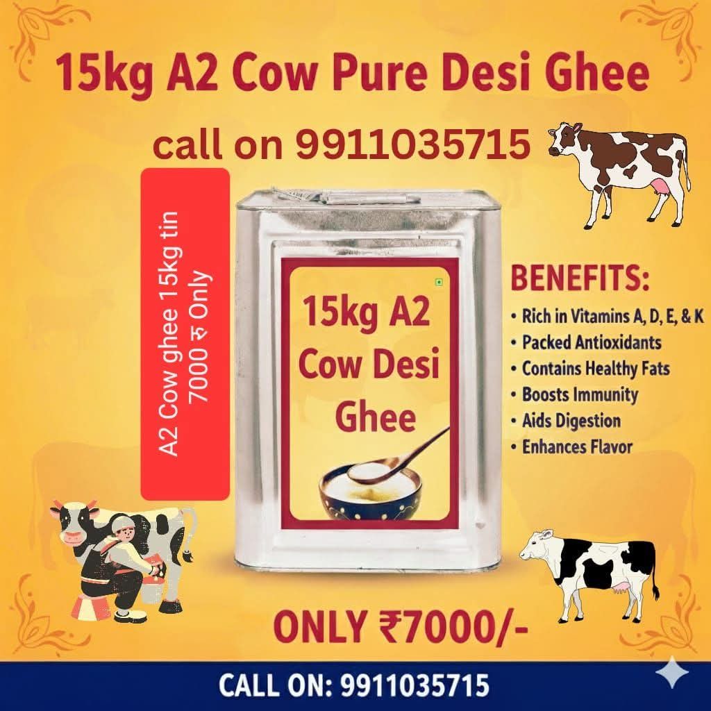 Product: A2 cow gheePacking: 15 kg tinPrice: INR 7,000Call: 99110 35716