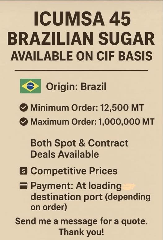 Product: ICUMSA 45 White Sugar