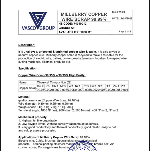 Product: Copper wire scrap
