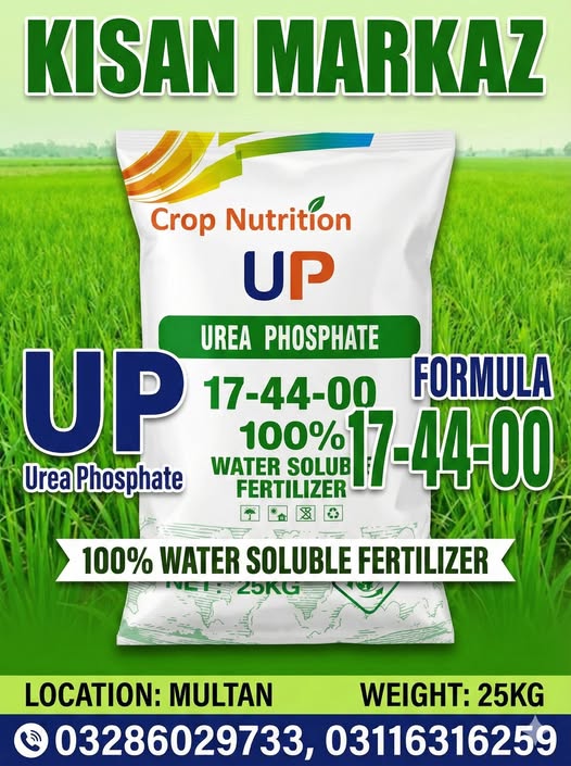 UP (Urea Phosphate) 17-44-00 is suitable for various crops and growth stages.