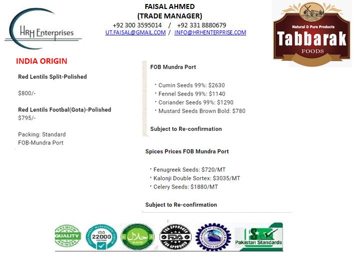 Spices Prices FOB Mundra Port (Subject to Re-confirmation)